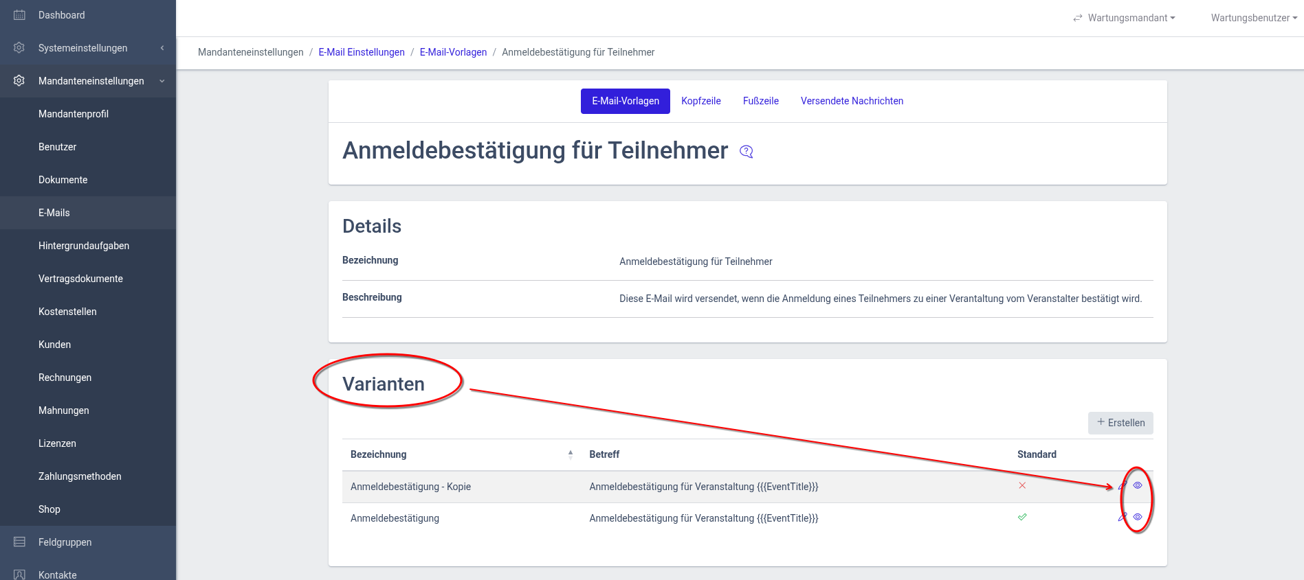 Variante einer E-Mail-Vorlage duplizieren