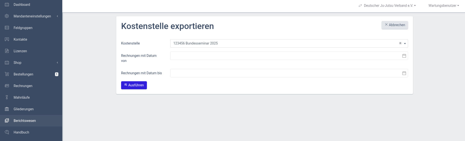 Nutzen Sie im Rechnungsmodul den erweiterten Rechnungsexport. Diese enthält neben den Rechnungsdaten alle Rechnungspositionen mit ihren Kostenstellen.